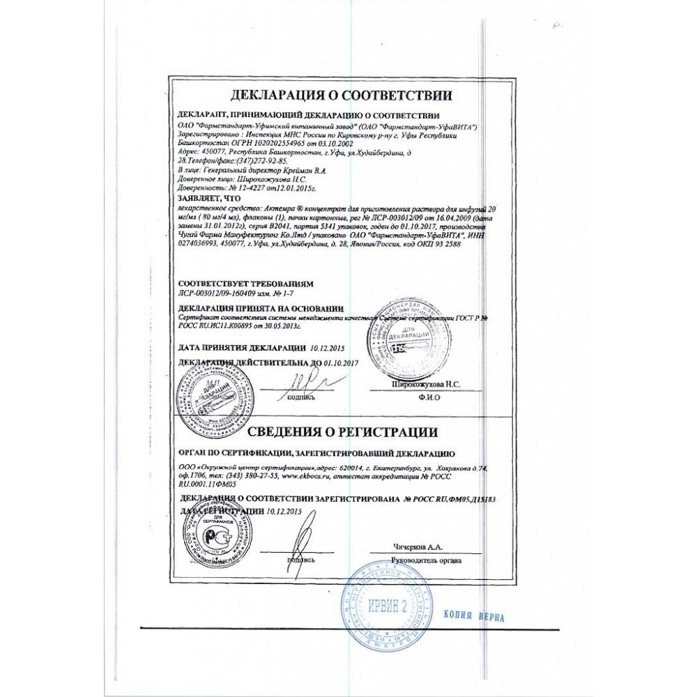 Частота серьезных реакций гиперчувствительности, связанных с инфузией Актемры, составила 0.3%. При появлении первых признаков анафилактической реакции необходимо назначить соответствующее лечение.