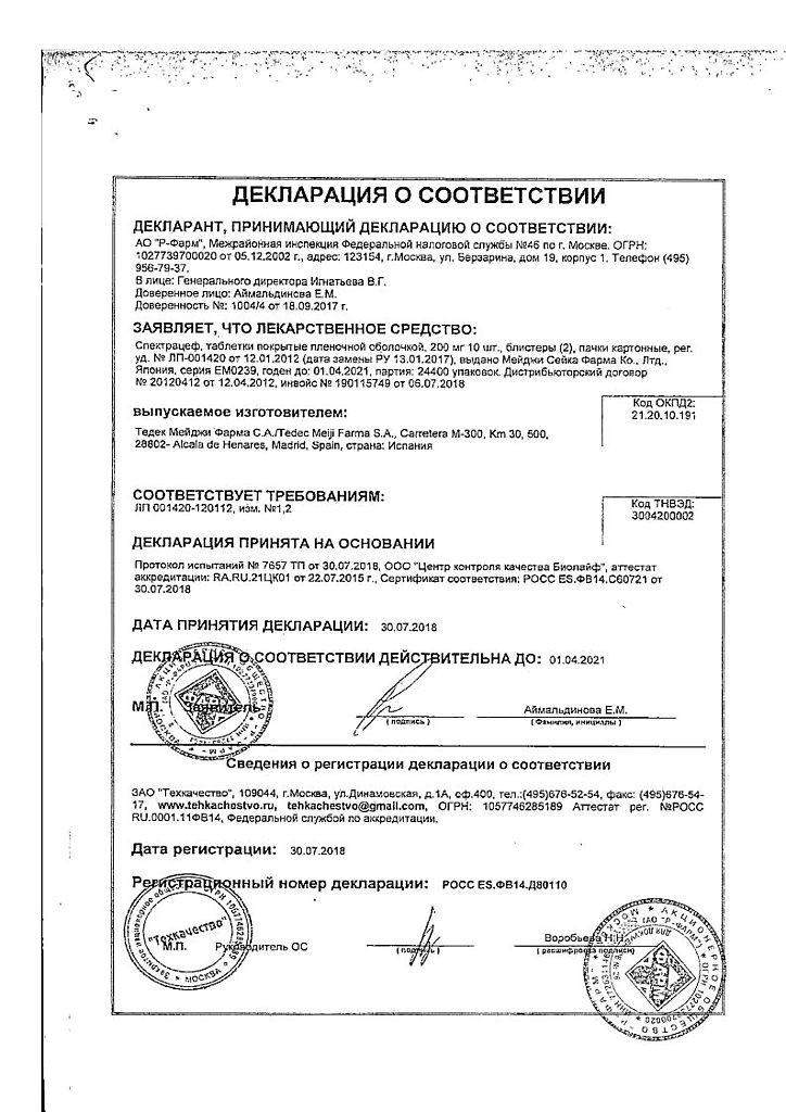 Спектрацеф - это антибиотик, который используется для лечения бактериальных инфекций. Он относится к группе цефалоспоринов третьего поколения и действует, убивая бактерии, которые вызывают инфекции.