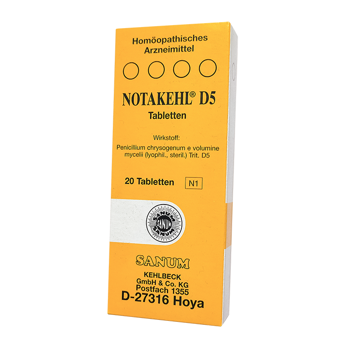 Применение. Доза составляет от 1 до 3 раз в день по одной таблетке Нотакель Д5, запивая достаточным количеством жидкости.