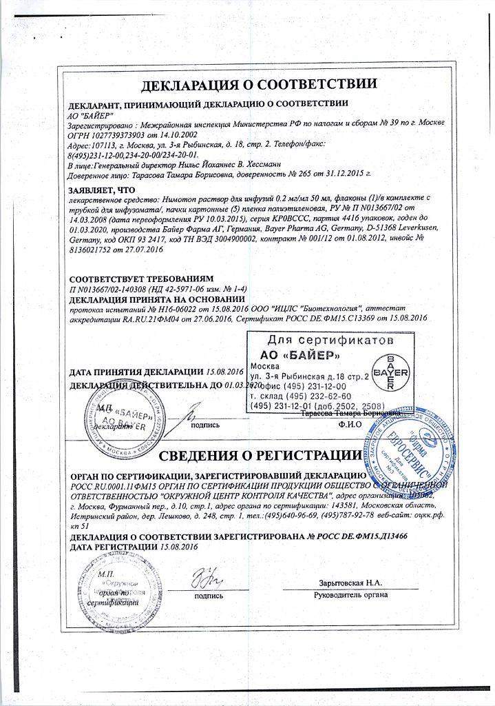 Один флакон с 50 мл инфузионного раствора содержит 10 мг нимодипина (активное вещество).Фармакологические свойства