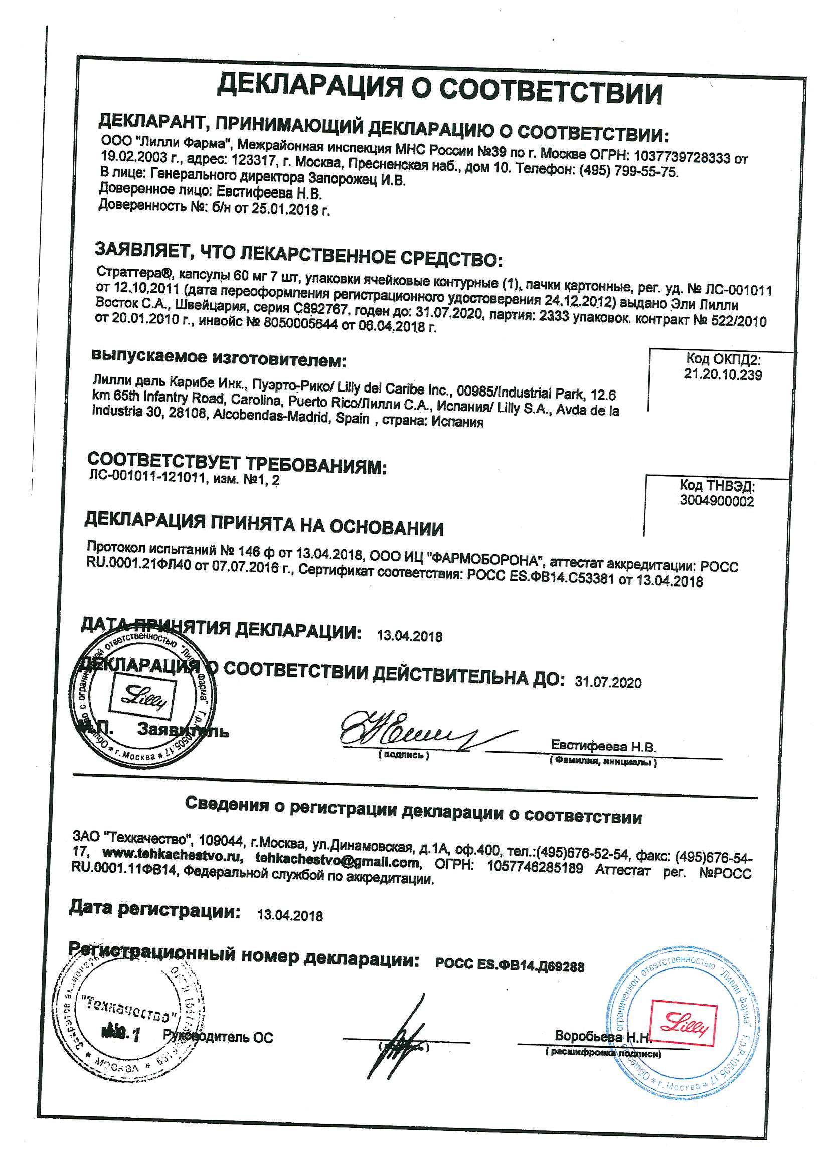 Применение. Страттера принимается независимо от приема пищи или во время еды, 1 раз/сут, утром. Дозу препарата определяет врач индивидуально в зависимости от возраста и веса пациента.