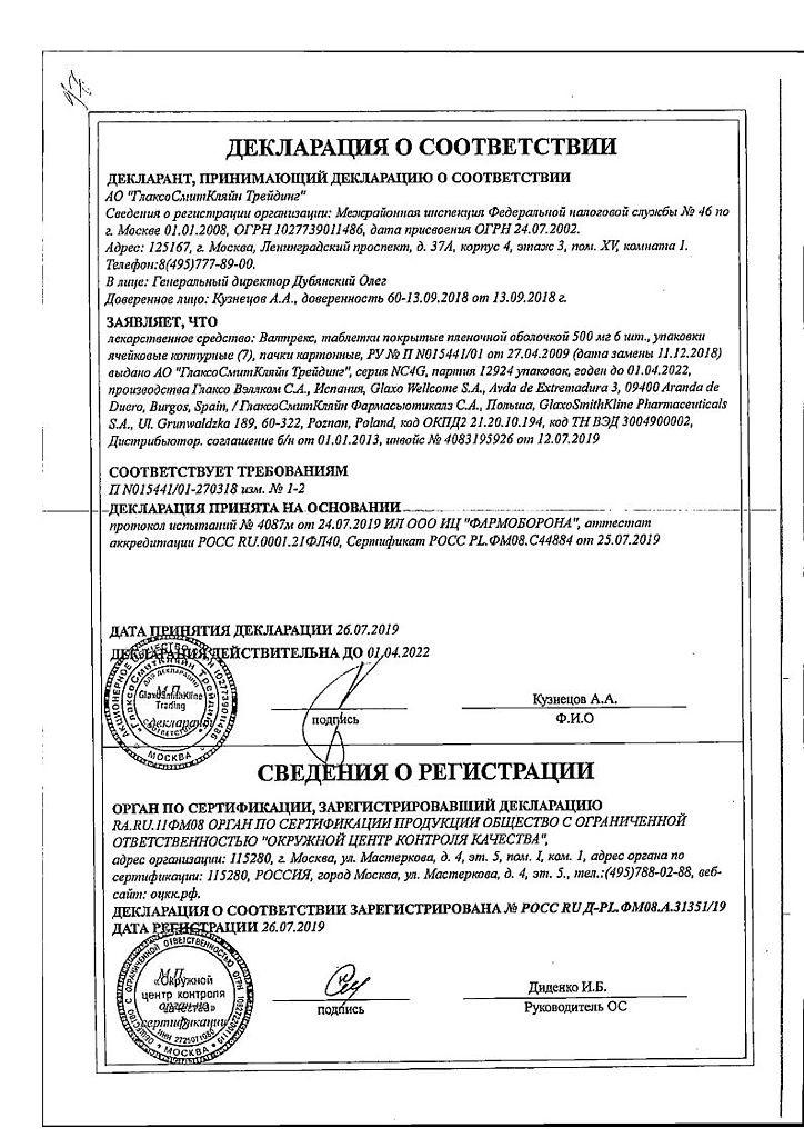 Инструкция по применению Валтрекс табл. 500 мг 42 шт
