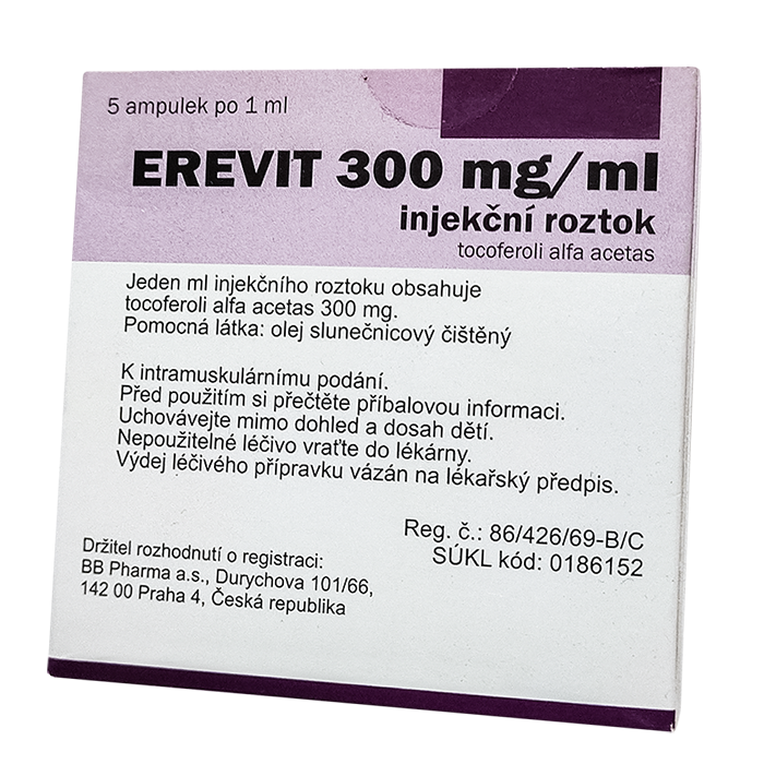 Эревит - это витамин Е, наиболее биологически эффективный токоферол, стабильный в форме ацетата. В организме он действует как защитный компонент клеточных мембран; его дефицит проявляется в основном в репродуктивной и сердечно-сосудистой системе и в мышцах.